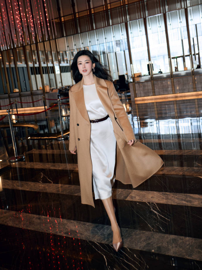 这套穿搭从整体到细节,很完美。 驼色大衣和白色连衣裙,虽然都是简单的基础款,但搭配在一起,加上朱珠干净的妆容,大波浪卷发,标志性的笑脸,这套穿搭就变得高级而又鲜活,美得很生动。 这套穿搭普通人完全可以照搬,经典简约,但是非常高级优雅。