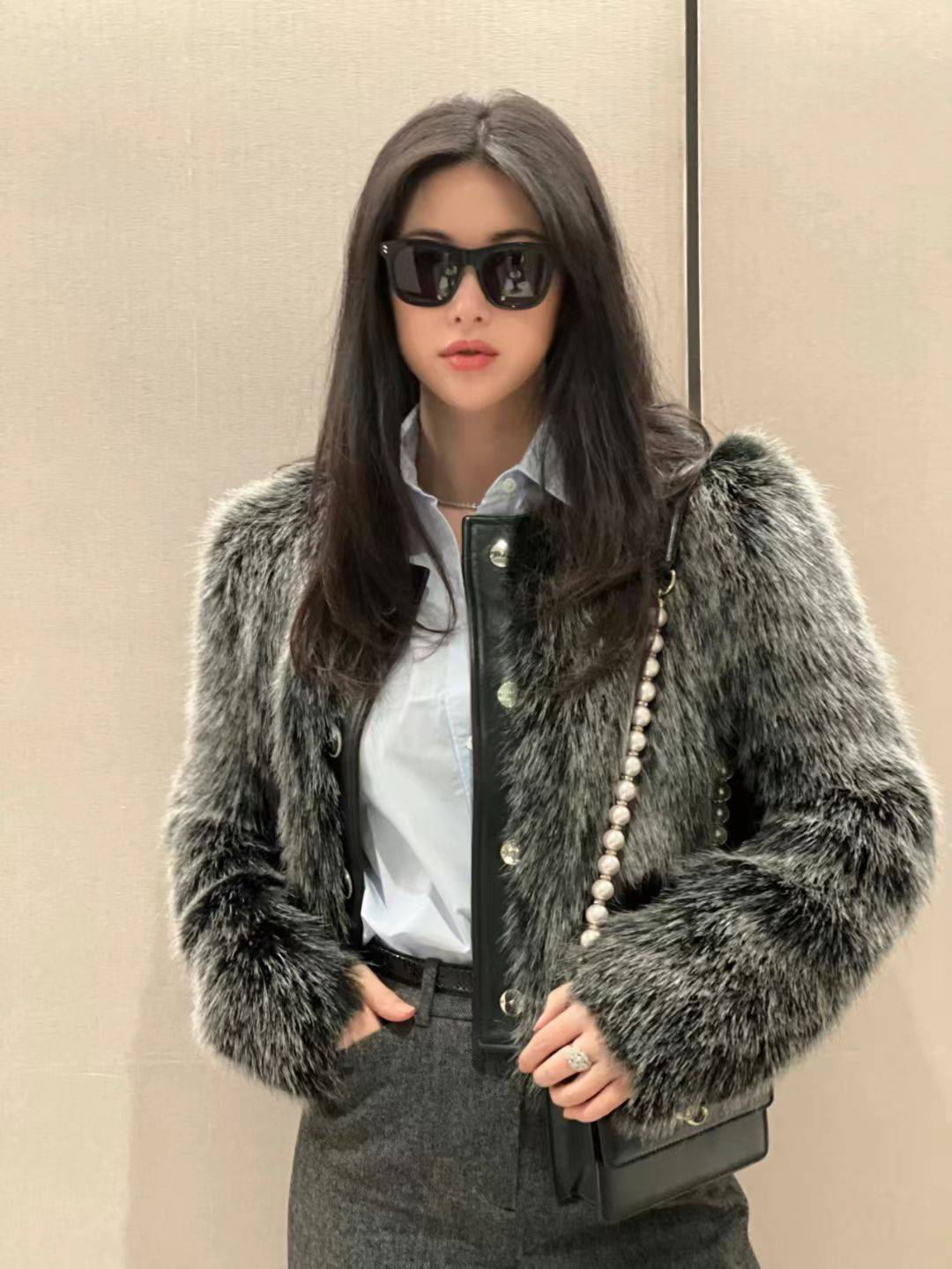 我发现她真的很爱这种草草毛毛外套,之前圣诞节这套白色毛毛外套+白裤子这套就好好看啊,很有古早富家千金范儿。
