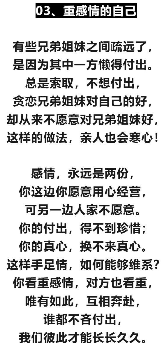 - 对自己而言:要主动经营手足关系,以宽容、理解之心对待兄弟姐妹,在矛盾中学会沟通与包容,并珍惜共同回忆。