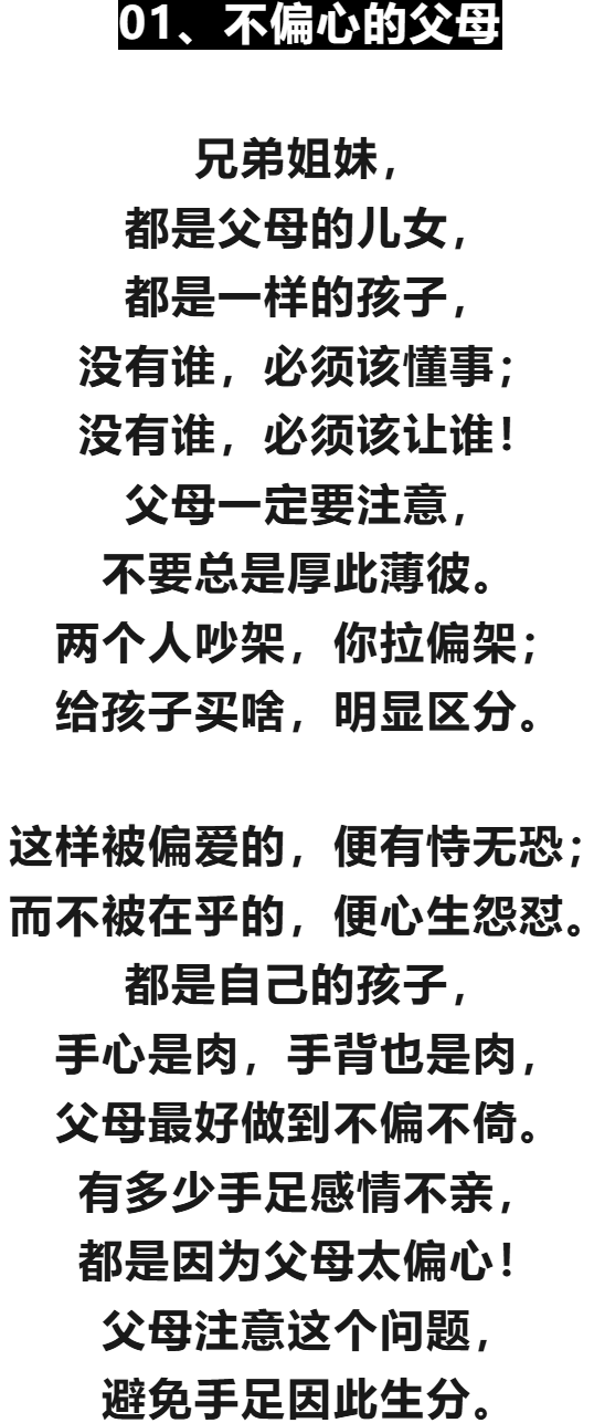 - 对父母而言:应努力营造公平、和谐的家庭氛围,给予每个孩子充分的爱与尊重,避免偏心比较。