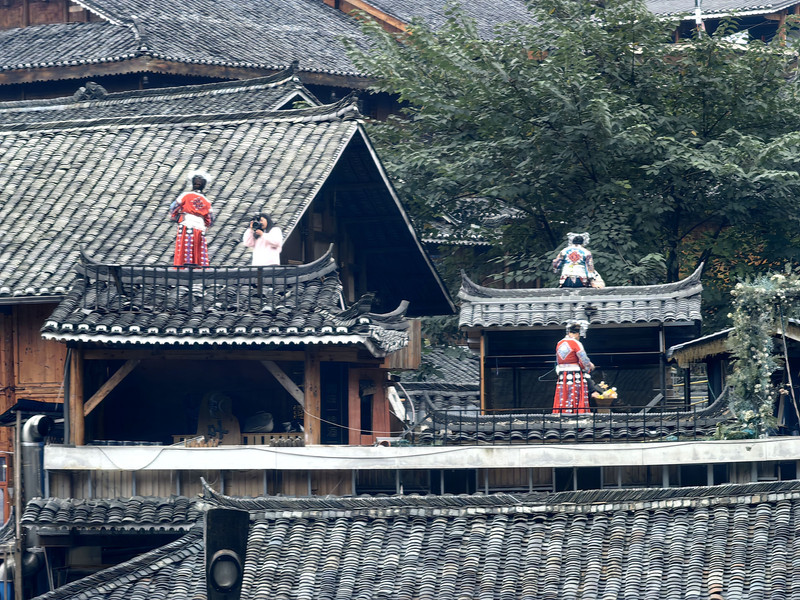 又爬了一百多级台阶回到民宿,民宿在半山腰,风景不逊于观景台。民宿有免费的苗族服饰、服装,几位女士兴致盎然,纷纷穿着拍照,忙的不亦乐乎。