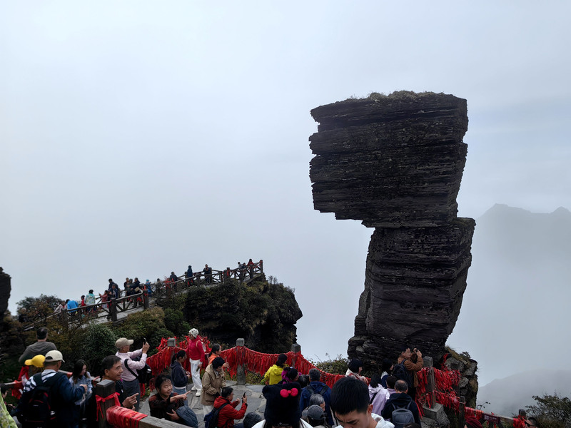 这里有很多形成于亿万年前的巨石,最具标志性的就是蘑菇石,外形酷是蘑菇,高大约十多米,亭亭玉立,看着像一触即倒,其实魏然不倒。蘑菇石区域是主要观赏拍照处,有各种奇石景观,这里照相的人很多,山势崎岖注意安全。去红云金顶的人可以在此扫二维码预约(也有说在索道就预约,但当时我没看到)。