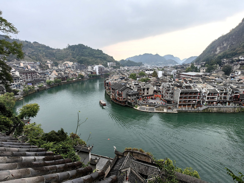 青龙洞依山而建,阶梯窄且陡,不少地方只容一人,上上下下挺耗体力。不过,在殿里俯瞰弯曲的舞阳河、古镇建筑景色还是不错。