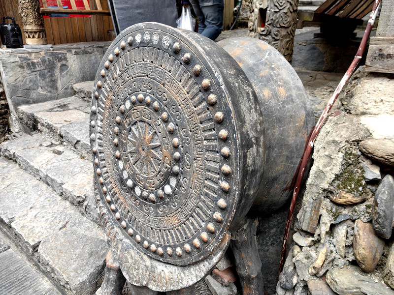 饭后,大家行走在河边,路过一座座风雨桥,拍照留念。夜晚漫步苗寨欣赏绚烂灯光秀,发出蓝、白、黄、绿、紫等各色灯光的灯饰,挂在景区各条道路、河道的树上等不同地方,置身其中,仿佛嵌入中国版“千与千寻”的世界。2、3、4、5 号风雨桥景色最好看,河边小路都是拍照最佳地点,5号桥下游水上小木桥也非常出片。我们边拍照边闲逛,走到1号风雨桥。然后折返进入商业街,走到也东寨小巷,巷口有个大石鼓,用手捶“咚咚”作响。
