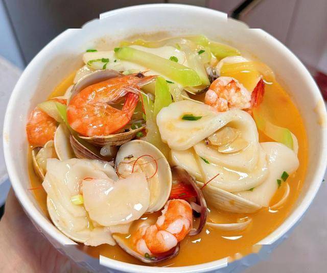 二、鲜虾白贝年糕汤