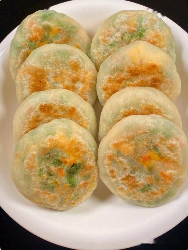 煎饼:在多功能锅的六圆盘加热,刷上食用油,倒入拌好的蔬菜糊,摊平。煎好一面后,翻面继续煎另一面[3]。