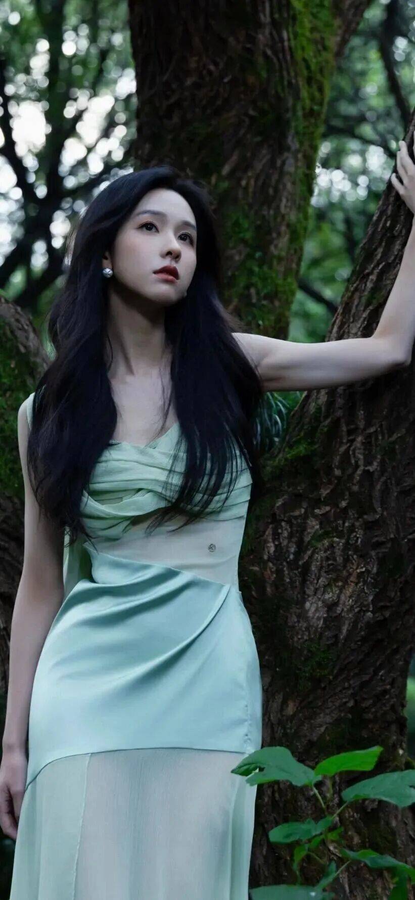 那些被时尚博主拆解的"中性元素与清冷气质的融合",在陈都灵身上化作具象的符号。风衣的硬挺线条撞上红背心的柔软,像极了现代女性刚柔并济的生存哲学;金属框眼镜压住眼尾上挑的弧度,瞬间把甜妹滤镜切换成智性美模式。最妙的是那套绿色连衣裙,缎面光泽里藏着老上海月份牌的韵味,裙摆开衩处却泄露着当代女性的自由意志——传统与先锋在她身上达成微妙平衡,正如翡翠在岁月沉淀中愈发温润,却始终保持着玉石特有的冷冽。