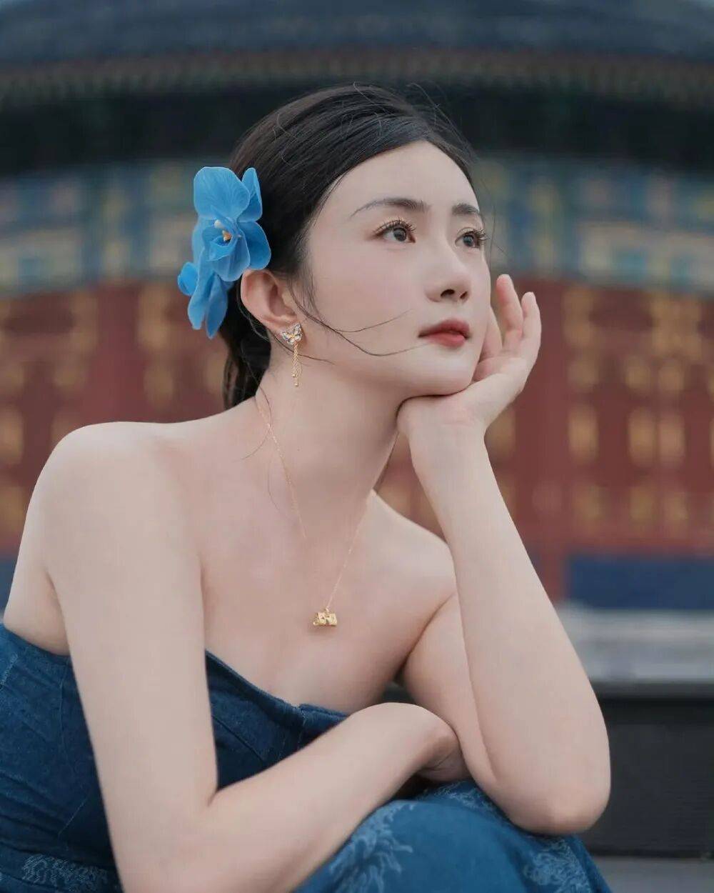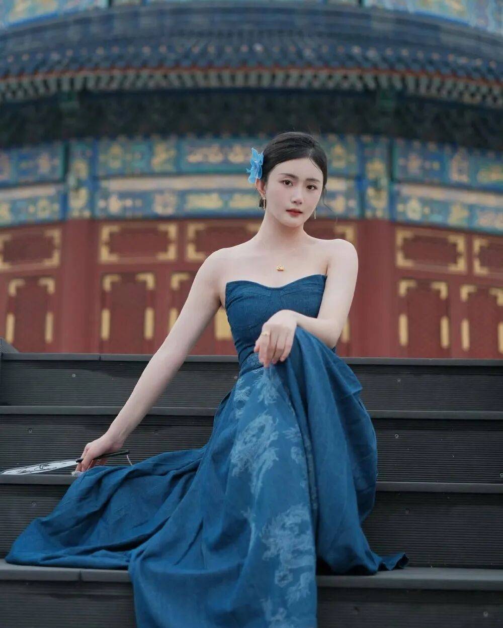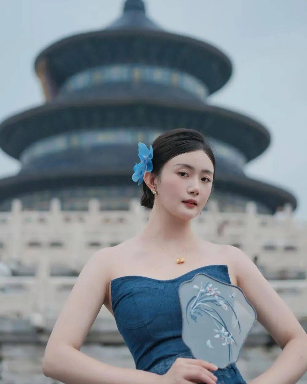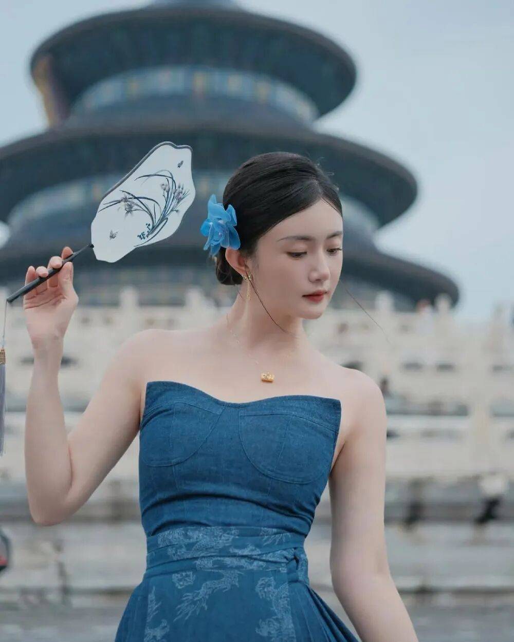 赵昕站在天坛的琉璃瓦下,像从古画里走出的仕女,又带着现代都市的摩登感——月白色旗袍上绣着暗纹云纹,腰间缀着流苏玉佩,发髻高挽却挑染了几缕栗色发丝,古典与现代在她身上奏响了最优雅的交响。