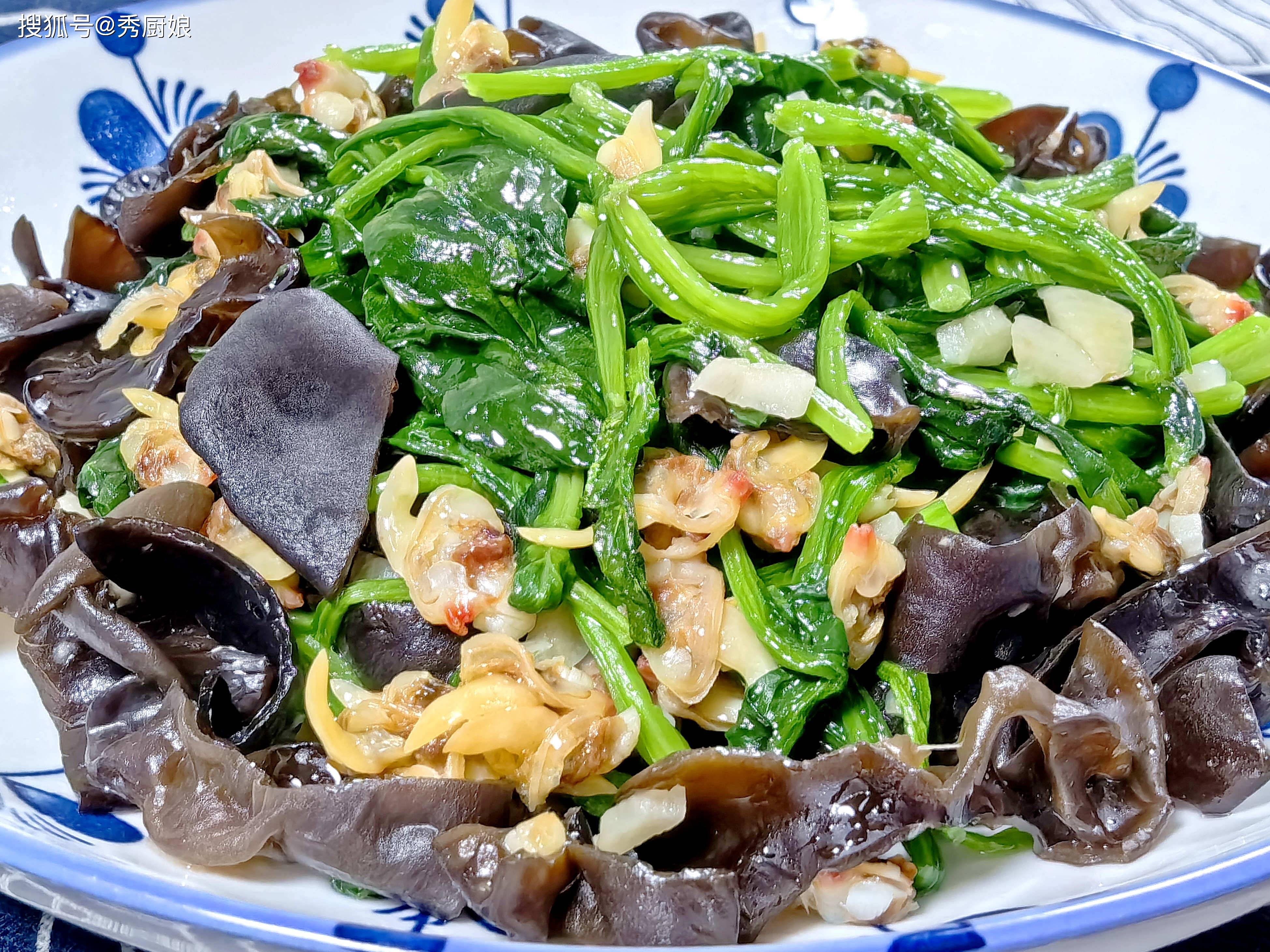一、菠菜黑木耳炒鲜蛤肉——鲜美补钙通便