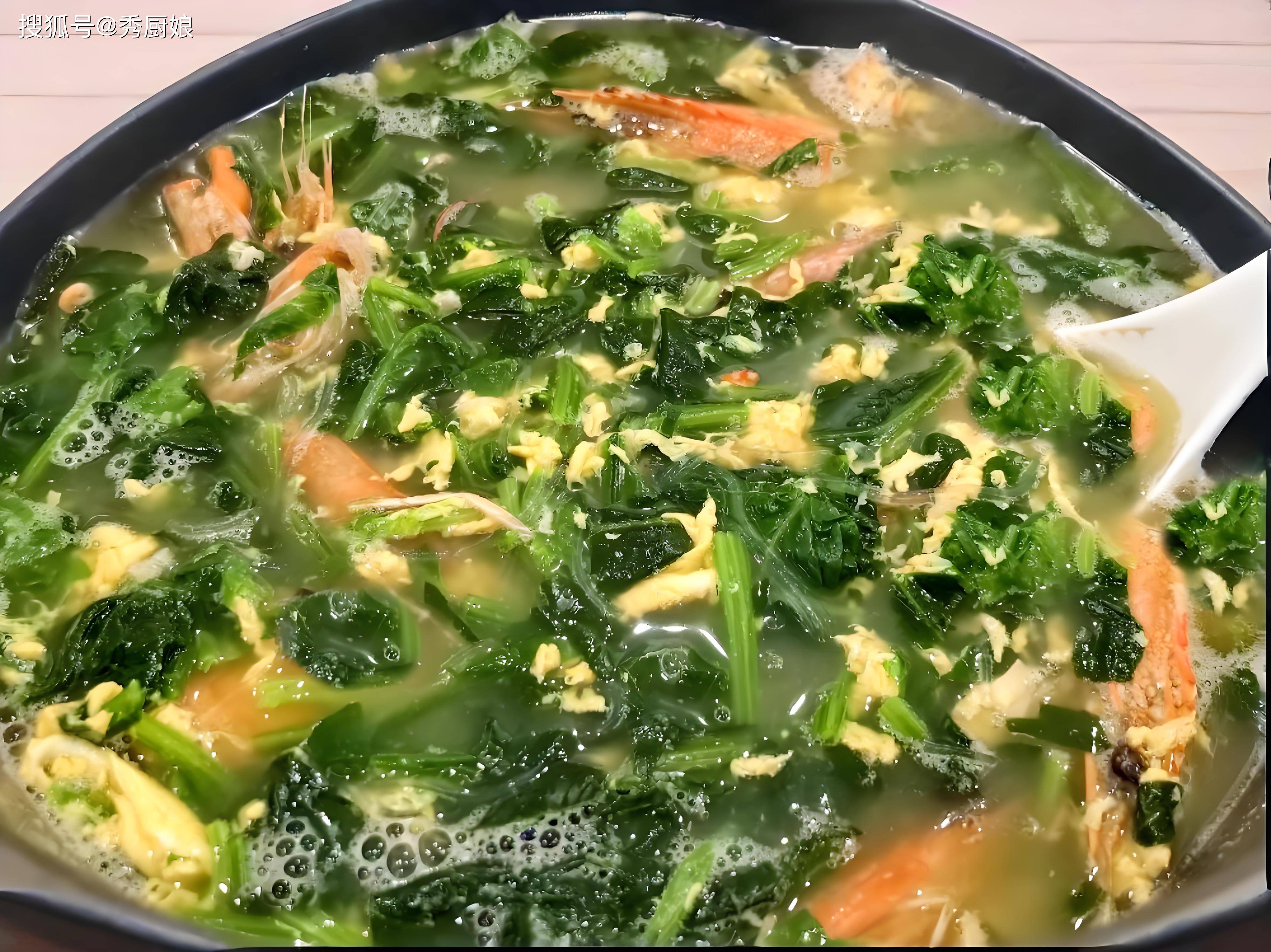 特点:汤色清澈鲜美,大虾的海鲜味与鸡蛋的醇厚结合,菠菜和粉丝增添口感层次。十分钟快手汤,暖身又暖胃。