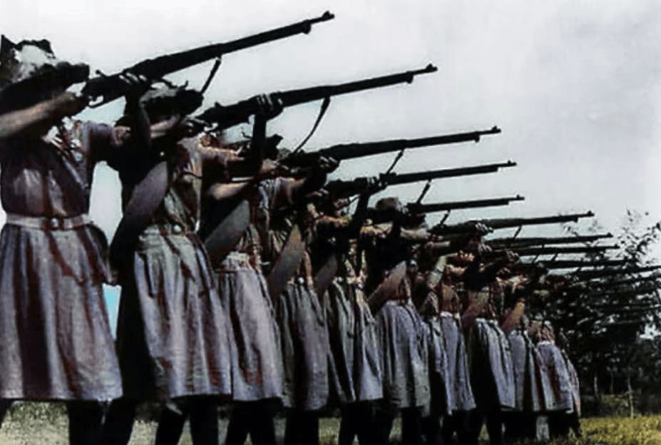 真正让国民党女兵数量迎来爆发式增长的,是抗日战争,随着战争的持续,前线兵源越来越紧张,国民党政府提出了十万青年十万军的号召,大批青年学生响应号召投笔从戎,其中就有不少女青年。