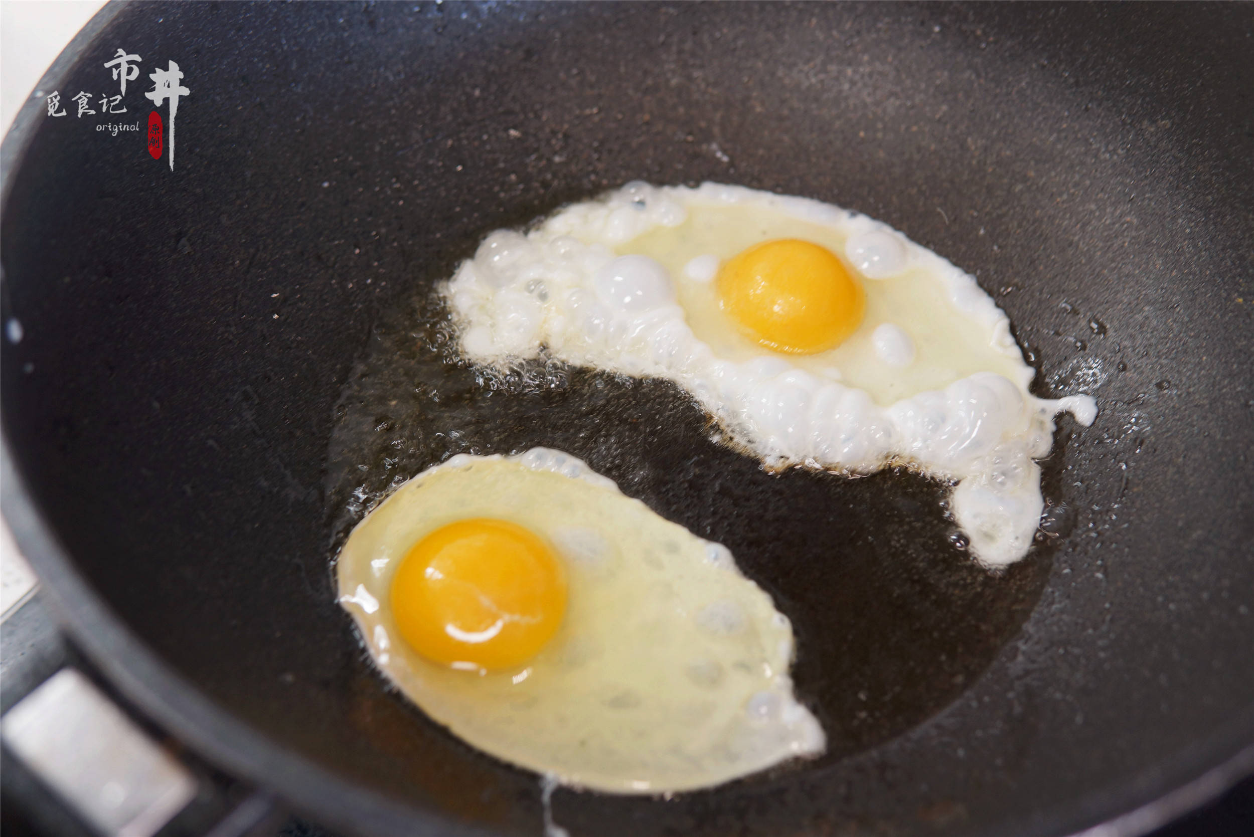 锅中倒宽油,油热后打入鸡蛋,小火慢煎至两面金黄(保留软嫩口感,汤更鲜)。