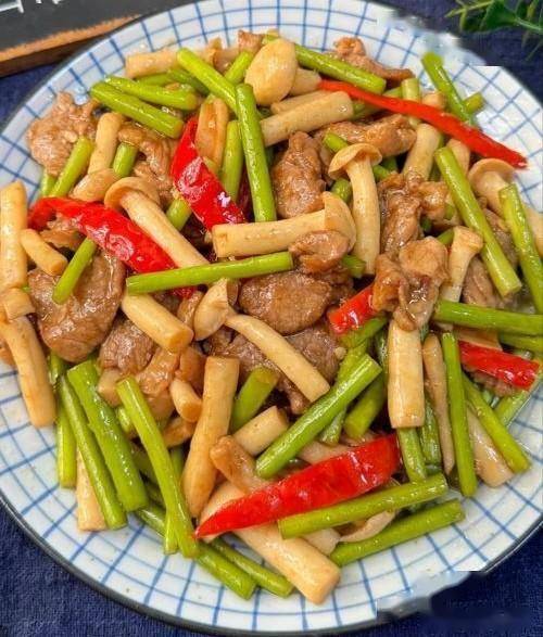 四、蒜苔白玉菇炒肉