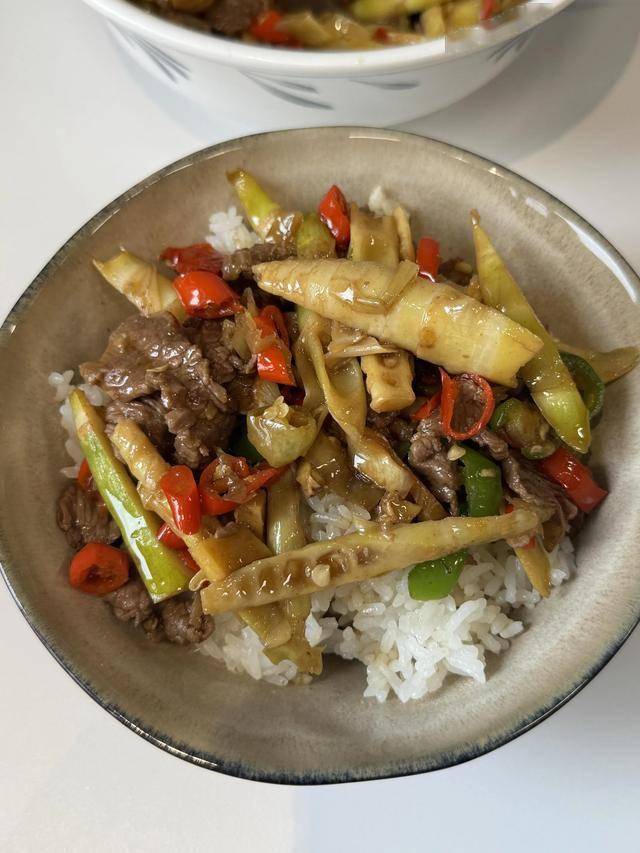 春笋炒肉丝:春笋与猪肉丝快炒,鲜香下饭。