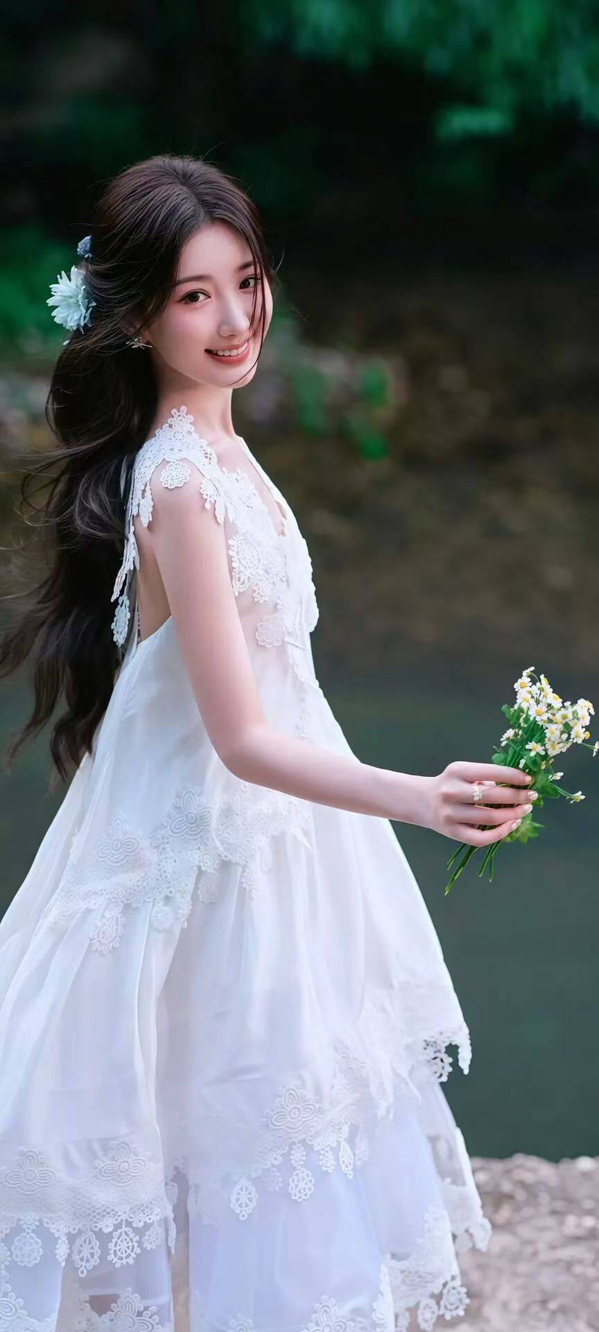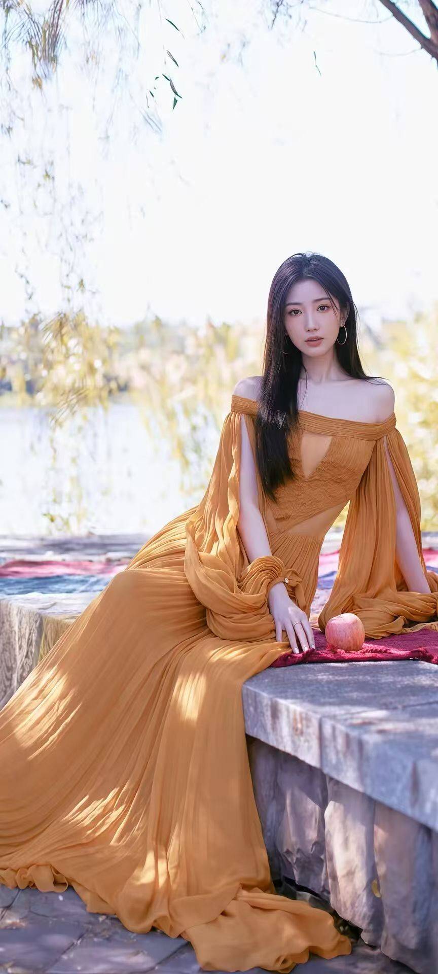 毛晓彤往湖边一坐,整个画面都温柔得像首诗。你看她穿那件焦糖色露肩长裙,裙摆被风吹得轻轻扬起,像融化的太妃糖一样软糯。长发随意地披在肩上,手里拿着个红苹果,坐在铺着彩色毯子的石阶上,背后是垂柳和波光粼粼的湖面,活脱脱从印象派油画里走出来的少女,甜而不腻,温柔得能掐出水。换身蓝色礼服更绝,露背设计露出蝴蝶骨,转身时裙摆上的紫色羽毛随风飘动,头发上别着同色系的花朵,脖子上的钻石项链闪着细碎的光。这时候的她完全没有了平时的邻家感,像童话里的暗夜精灵,神秘又高贵。尤其是她回头的瞬间,眼神里带着点懵懂的无辜,和华丽的礼服形成反差萌,让人一下子就想到《甄嬛传》里那个单纯又倔强的瑛贵人。最让人惊艳的是她穿白色蕾丝裙的样子,站在水边,手里拿着小雏菊,头发被风吹起几缕,笑起来眼睛弯成月牙儿,露出浅浅的梨涡。裙子上的蕾丝花纹精致得像艺术品,背后的绑带设计小性感又不失清纯,活像个刚从森林里跑出来的小仙女。这时候的她又变回了那个我们熟悉的毛晓彤,带着点甜妹的娇憨,又带着点独立女性的飒爽。可转眼她又变身红裙女王,抹胸设计露出精致的锁骨,头发被风吹得凌乱,眼神锐利又妩媚。红色衬得她皮肤像雪一样白,耳朵上的钻石耳坠随着动作轻轻晃动,既有成熟女人的风情,又有少女的灵动。这时候的她完全没有了"乖乖女"的影子,让人想起她在采访里说的"我不是菟丝花,我是能自己扎根的树"。从甜妹到御姐,从邻家女孩到红毯女王,毛晓彤就像颗被低估的珍珠,越打磨越耀眼。她最厉害的地方就是不管什么风格都能驾驭,而且每种风格里都带着自己独特的灵气。尤其是她的眼睛,既能笑得像孩子,又能冷得像冰,这种反差感真是让人欲罢不能。看着她从《三十而已》里的钟晓芹到现在的多面女王,突然明白为什么那么多人喜欢她——她身上有种温柔又坚韧的力量,像春天的风,看似柔软,却能吹开整个冬天的积雪。现在的毛晓彤,就像一杯恰到好处的温水,不烫嘴,却能暖到心里,让人忍不住想一直关注下去。