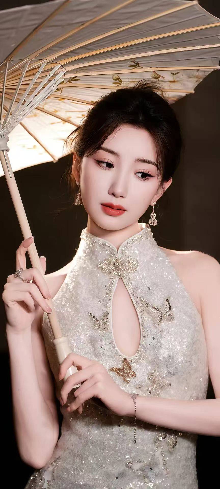 毛晓彤这姑娘真是让人惊喜,以前总觉得她是那种甜甜的邻家女孩,没想到穿上传统服饰居然这么有韵味!看她最新的这组照片,简直像从古画里走出来的古典美人,既保留了她本身的甜美,又多了几分东方女性的温婉和大气,这种反差萌真是让人眼前一亮。最让人惊艳的是她穿粉色长裙的那张,坐在户外的椅子上,背后是郁郁葱葱的绿植,整个人就像一朵盛开的桃花。裙子的颜色是那种温柔的豆沙粉,一点都不艳俗,反而衬得她皮肤白里透红。设计也很有巧思,斜肩的款式露出一边精致的锁骨,胸前交叉的布料上镶嵌着水钻,随着她的动作闪闪烁烁,像把星星都缀在了衣服上。最绝的是袖子上的流苏,随着她抬手的动作轻轻晃动,灵动又飘逸。她把头发松松地挽成一个低发髻,几缕碎发垂在脸颊边,配上粉色的耳坠,温柔得能掐出水来。再看她穿红色抹胸裙的样子,又变成了热情似火的红玫瑰。长发被风吹起,眼神坚定地望向镜头,完全没了平时的甜美,多了几分霸气和张扬。裙子的材质是那种有光泽的缎面,在光线下泛着好看的光泽,腰间的蝴蝶结设计又增添了几分少女感。她的妆容也很有讲究,眼尾微微上扬,嘴唇涂着正红色的口红,整个人都散发着“不好惹”的御姐气场,让人忍不住感叹:这还是我们认识的那个甜妹毛晓彤吗?最有东方韵味的要数她穿旗袍的造型,简直把“古典美”三个字诠释到了极致。白色旗袍上缀满了细碎的亮片,在光线下闪得人睁不开眼,领口的蝴蝶装饰和耳垂上的蝴蝶耳坠相互呼应,精致得让人挪不开眼。她手里拿着一把油纸伞,眼神望向远方,像从江南烟雨中走出来的大家闺秀,温婉又端庄。尤其是她的侧脸,高挺的鼻梁,清晰的下颌线,配上复古的妆容,简直就是从老上海画报里走出来的美人。还有她穿红色旗袍的那张,更是美得让人窒息。红色的旗袍上绣着金色的花纹,手里拿着一把黄色的油纸伞,站在暖黄色的灯光下,整个人都散发着一种神秘又妩媚的气息。她的手腕上戴着精致的手链,手指上的戒指和指甲上的红色指甲油相互呼应,每一个细节都透着精致。这时候的她不再是那个甜美的小女孩,而是变成了风情万种的成熟女性,让人忍不住想要探究她背后的故事。看了这么多毛晓彤的照片,你会发现她真的是个宝藏女孩。她可以是甜美可爱的邻家妹妹,也可以是热情似火的御姐,更可以是温婉端庄的古典美人。这种在各种风格间自由切换的能力,让她不管穿什么都让人眼前一亮。难怪那么多人喜欢她,毕竟谁能拒绝一个又甜又飒、可盐可甜的毛晓彤呢?