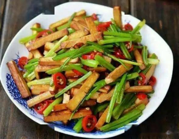 1. 芹菜洗净切段,香干切片,蒜切末。