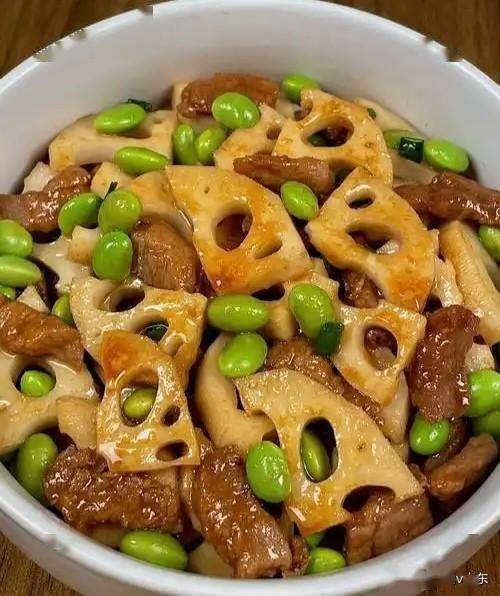 2. 莲藕毛豆炒牛肉(铁+锌组合)