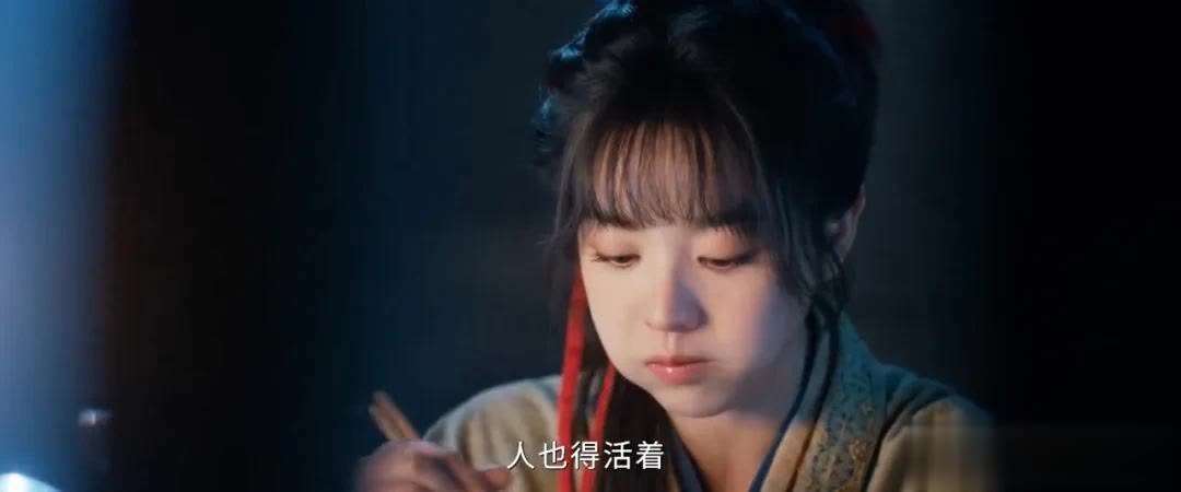 手里捧着馒头,面前只有最简单的菜肴,长玉却吃得津津有味。咬下一大口馒头,再夹菜送入口中,还不忘对李怀安说:爹娘说了,饭得照吃,觉得照睡。天塌的大事,人也得活着! 说完,她继续吃着馒头,不久便哭了起来,嘴角还挂着馒头屑。想到妹妹的安危,长玉忍不住潸然泪下。李怀安安慰她,但她的情绪愈发无法控制,镜头拉远,她攥着馒头放声大哭。